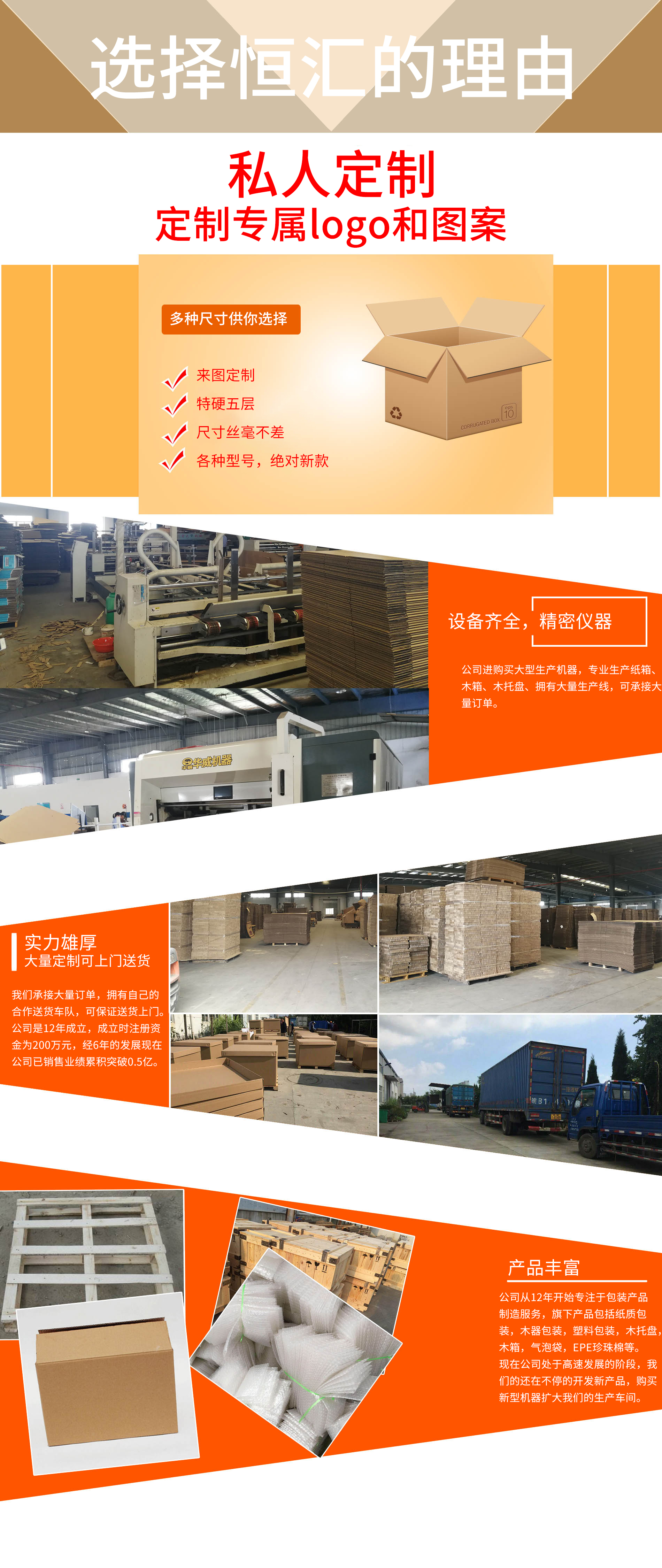 蕪湖恒匯包裝有限公司于2012年4月12日成立,公司地址現(xiàn)位于蕪湖市經(jīng)濟(jì)開(kāi)發(fā)區(qū)泰山路26號(hào)( 蕪湖鄭明物流院內(nèi)),本公司主要生產(chǎn)紙質(zhì)包裝、木器包裝、塑料包裝( EPE珍珠棉、氣泡袋、平口袋)等包裝產(chǎn)品,我司擁有完整科學(xué)的質(zhì)量管理體系。本公司自成立后堅(jiān)持以“信任從品質(zhì)開(kāi)始"的理念與很多客戶(hù)進(jìn)行友好業(yè)務(wù)往來(lái),業(yè)務(wù)逐年增長(zhǎng),為了擴(kuò)大規(guī)模再生產(chǎn),本公司又于2019年12月注冊(cè)蕪湖金淮商貿(mào)有限公司,兩家公司以互聯(lián)網(wǎng)+實(shí)體模式共同發(fā)展,爭(zhēng)取到2022年銷(xiāo)售業(yè)績(jī)突破2億元,公司將實(shí)行資源整合統(tǒng)一管理模式,將一如既往堅(jiān)持‘務(wù)實(shí)創(chuàng)新,團(tuán)結(jié)奮進(jìn),精益求精’的企業(yè)精神和'質(zhì)量為先,客戶(hù)至上’的經(jīng)營(yíng)宗旨,不斷完善服務(wù)體系,以社會(huì)化的服務(wù)精神,真誠(chéng)為廣“大客戶(hù)提供完善的服務(wù),以熱情的銷(xiāo)售,全程陪同,及時(shí)熟知您的需求,量身定制,為您節(jié)省成本,節(jié)約能耗,為您企業(yè)發(fā)展插上騰飛的翅膀。讓我們成為客戶(hù)的同時(shí),永遠(yuǎn)成為朋友。蕪湖恒匯包裝有限公司...